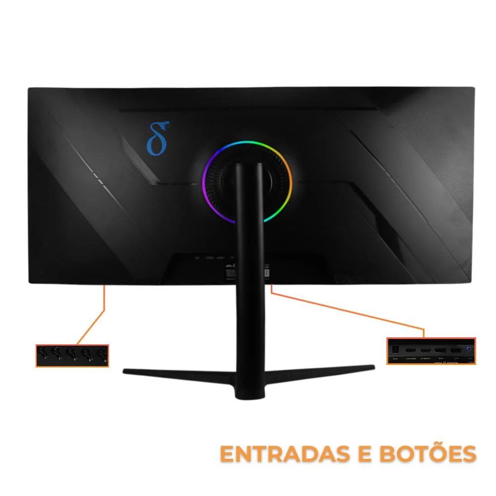 - ✅ Curvatura que melhora a imersão e reduz reflexos laterais.