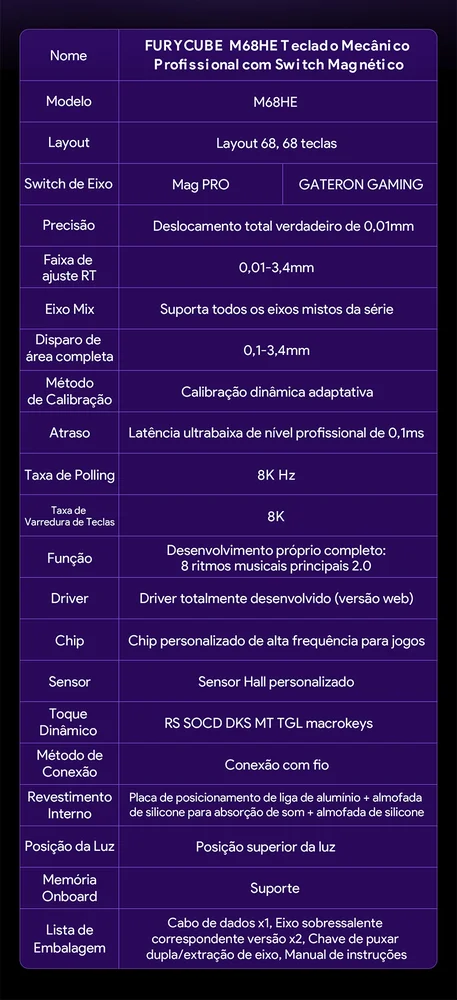 Especificação: Teclado Gamer Mecânico Switch Magnético Resposta Ultra Precisa