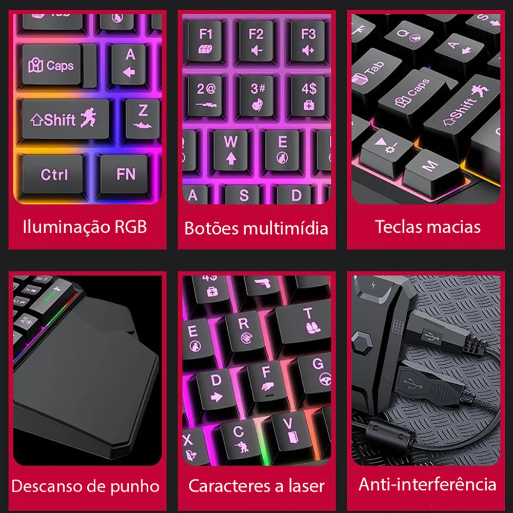 - Iluminação LED RGB: Retroiluminação vibrante que melhora a visibilidade das teclas e personaliza o setup gamer.