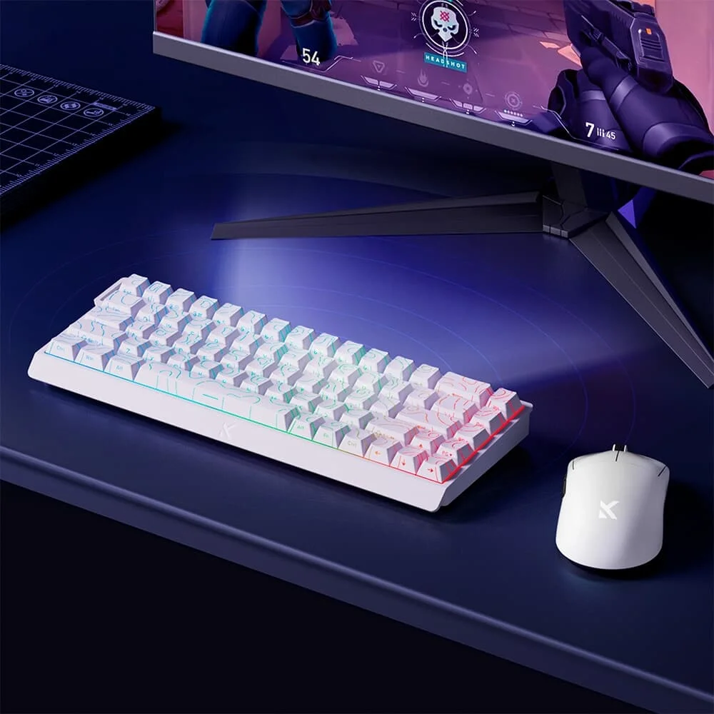 Teclado Magnético Gamer MCHOSE Ace 68 Hall Effect RGB Switch Topographic Uranus Branco MC-Ace68-16