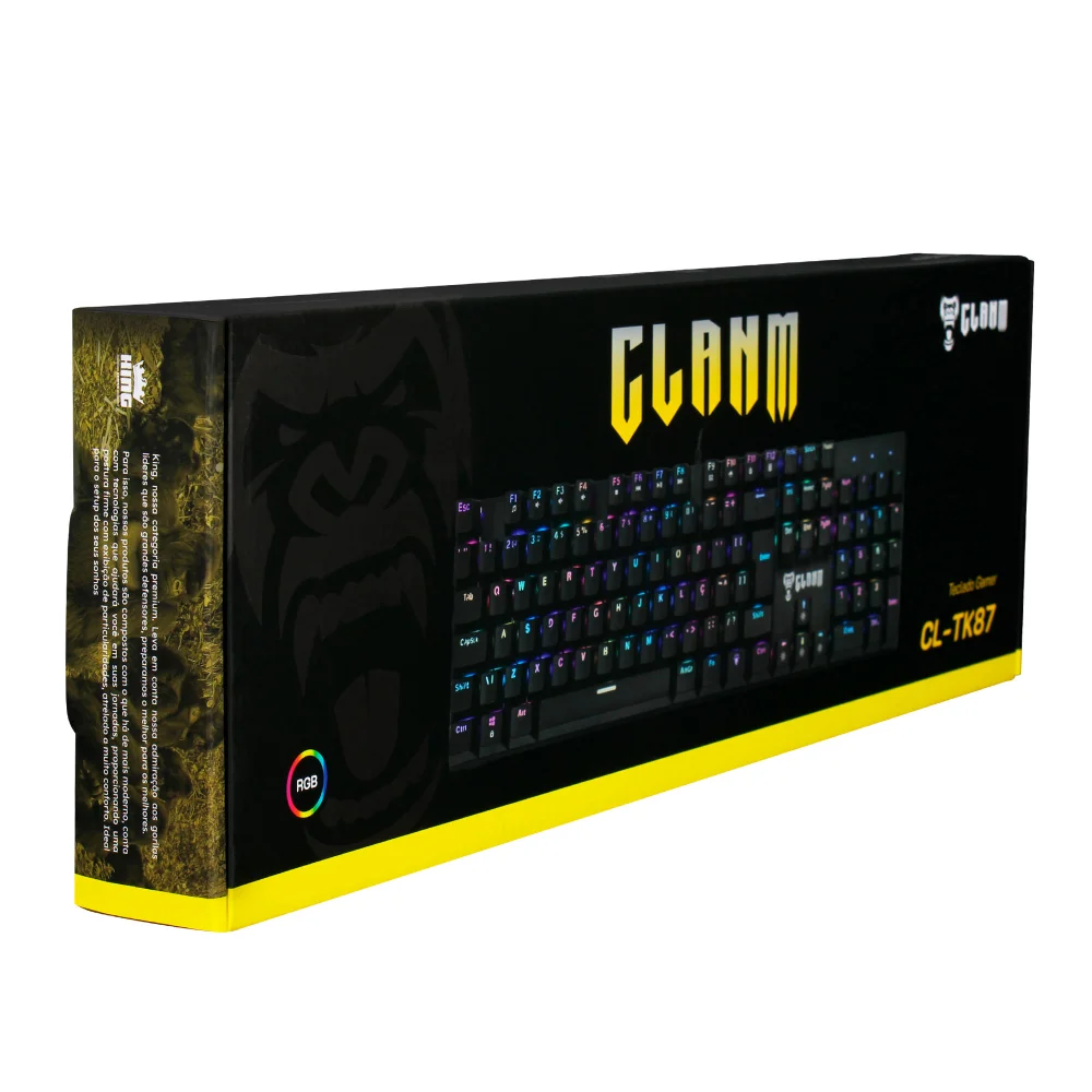 Teclado Mecânico Gamer Clanm King RGB Switch Vermelho Preto CL-TK87