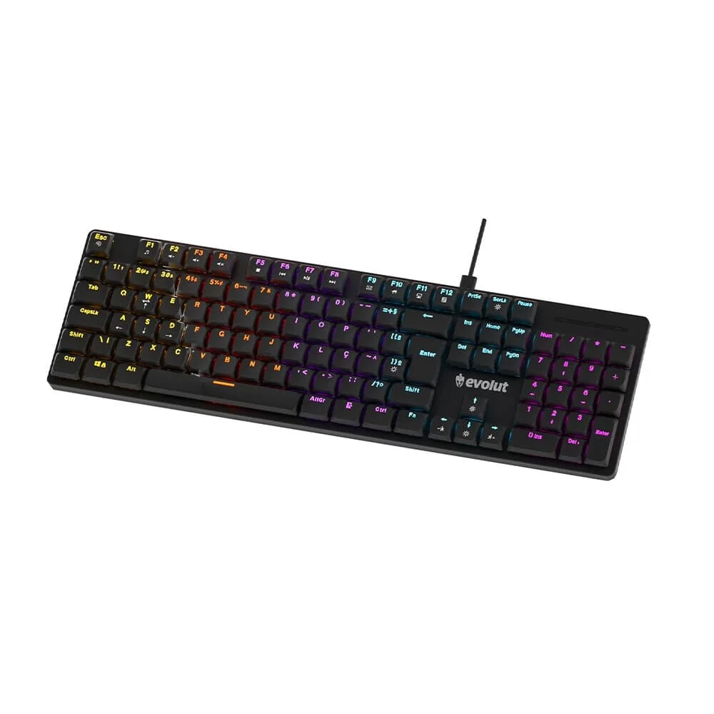Teclado Mecânico Gamer Evolut RYZ Switch Vermelho Low Profile USB 2.0 ABNT2 Preto EG222