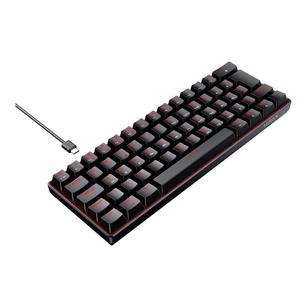 Teclado Mecânico Gamer Hyrax Thunder HCK61 LED Vermelho Switch Blue USB-C ABNT2 Preto HCK61B-BLUE-LED