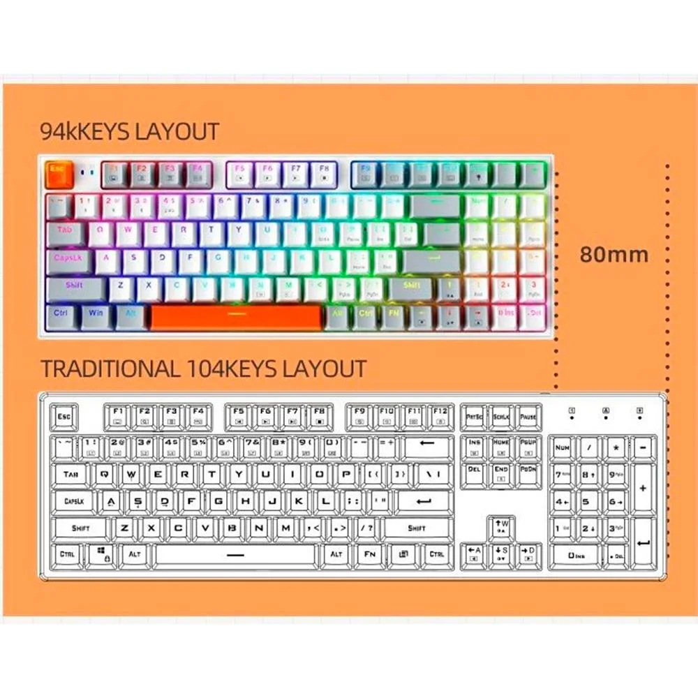 Teclado Mecânico Gamer Machenike K500-B94 RGB Switch Huano Red Branco e Cinza MAC-K500-B94RE-WG