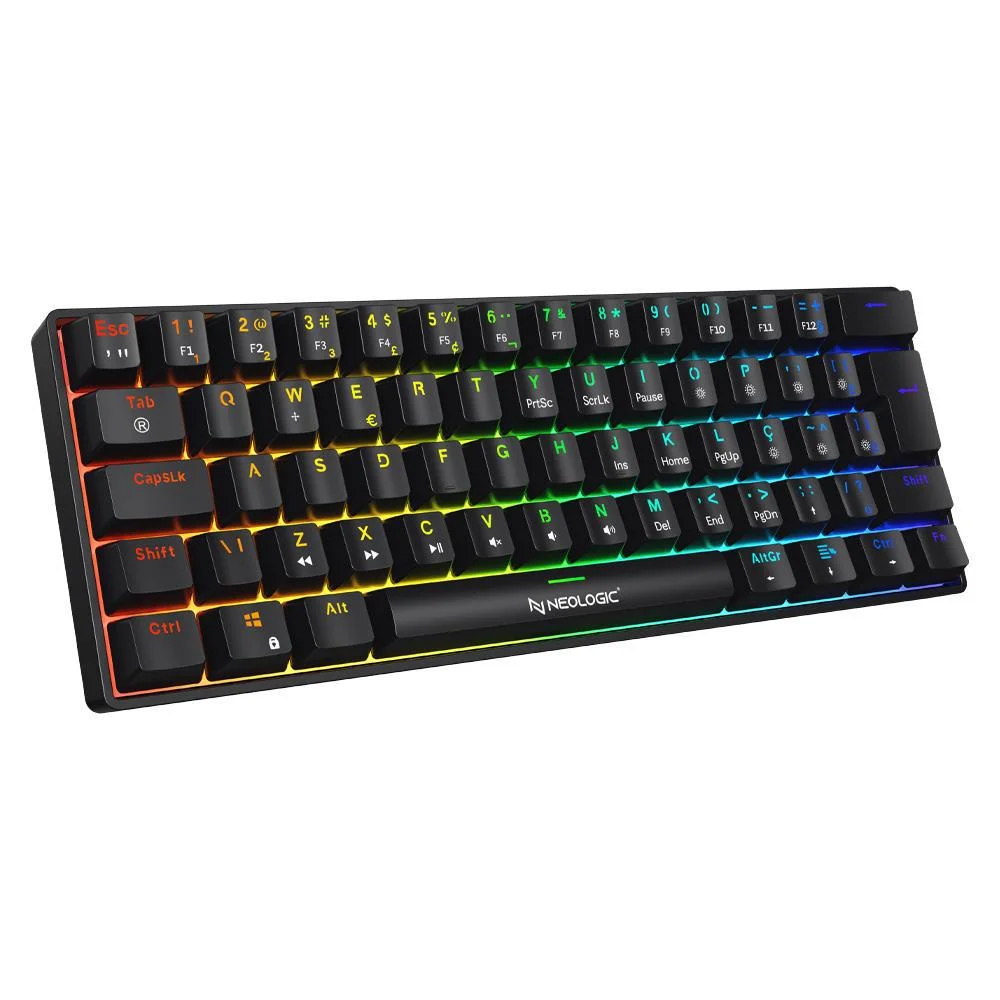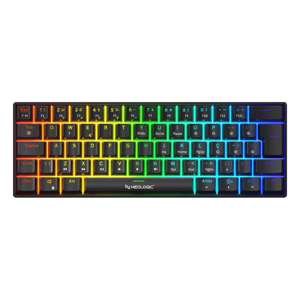 Teclado Mecânico Gamer Neologic Precision Pro Dark RGB 60% Hot Swap Switch Blue Cabo Tipo C Preto PRODRK-BLUE