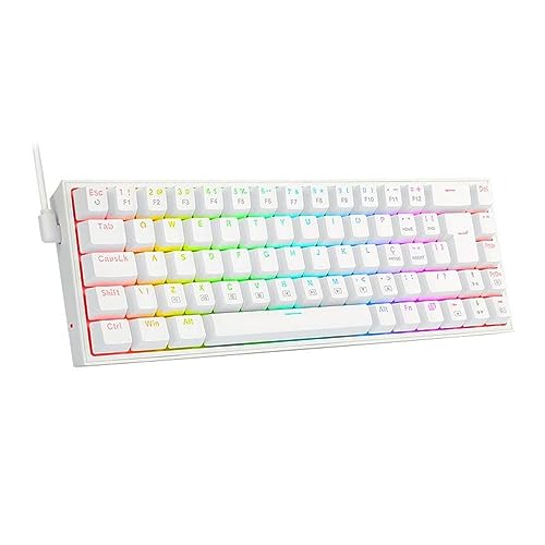 O Redragon Castor K631W-RGB é um teclado mecânico gamer projetado sob o conceito de otimização de espaço e eficiência ergonômica. Com um formato de 65% (68 a 69 teclas, dependendo da variação de contagem), este periférico elimina o teclado numérico lateral para reduzir a amplitude do movimento entre as mãos do usuário, favorecendo a ergonomia em sessões de uso prolongado. O chassi é construído em plástico ABS de alta densidade, apresentando uma estética “White” integral que abrange tanto a carcaça quanto as teclas.