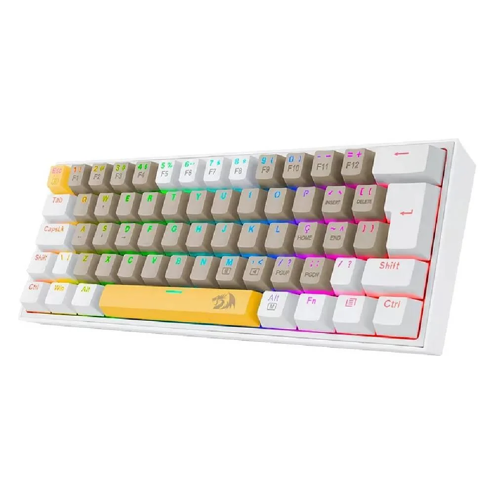 Teclado Mecânico Gamer Redragon Fizz RGB Switch Brown 60% ABNT2 Amarelo Cinza e Branco K617RGB-YLEGYEWT (PT-BROWN)