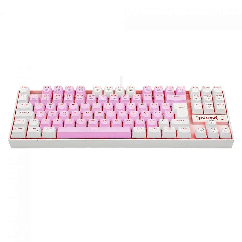 Teclado Mecânico Gamer Redragon Kumara LED Red Switch Brown ABNT2 Rosa e Branco