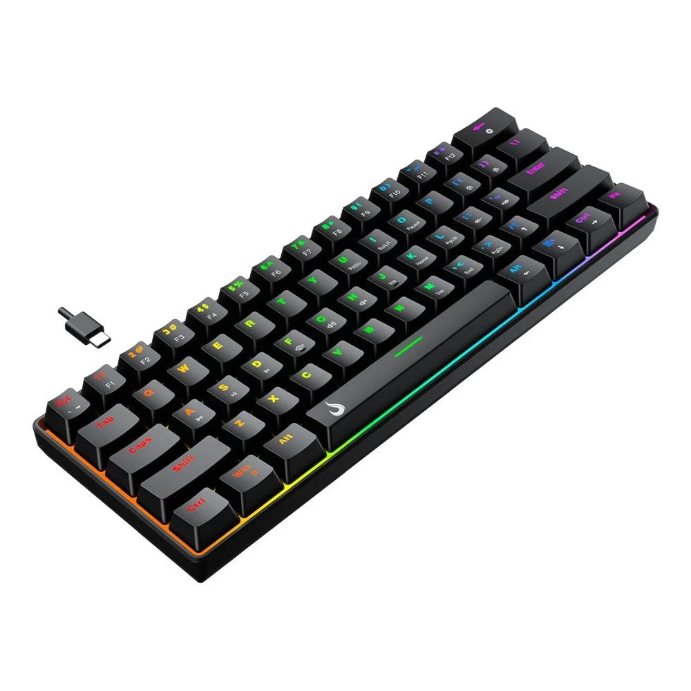- Design Compacto 60%: Formato ultra-reduzido que otimiza o espaço na mesa e melhora a ergonomia para o mouse.
