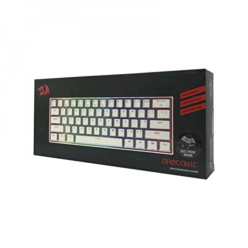 Teclado Mecânico Gamer Sem Fio Redragon Draconic Pro RGB Bluetooth Switch Azul 60% ABNT2 Branco K530W-RGB-PRO