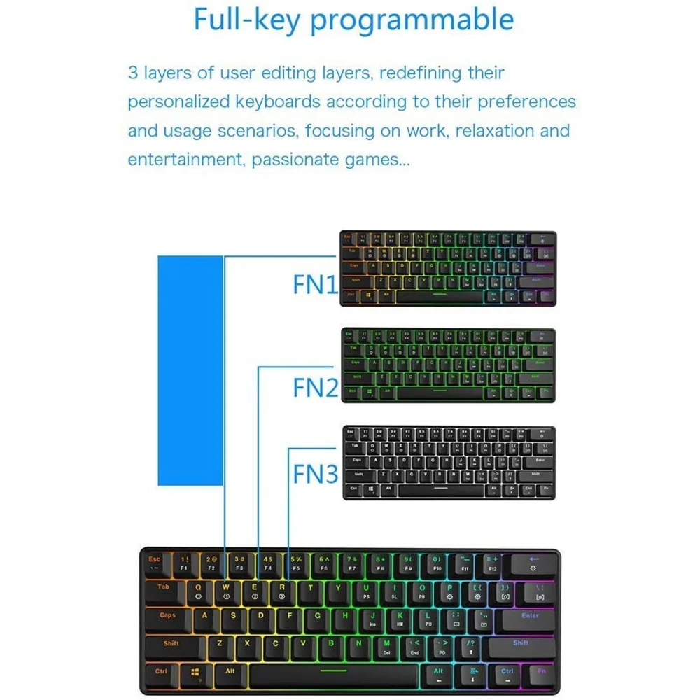 - ⭐ Formato 60%: Design ultra-compacto com 61 teclas, otimizando a ergonomia e liberando espaço físico na superfície de trabalho.